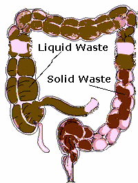 - خمول في حركة القولون. مما يؤدي إلى بطئ في حركة الفضلات وزيادة في امتصاص السوائل من الفضلات.