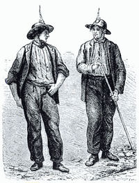 By the time the first European explorers arrived, the area was the home of the Chippewa people, who did not mine copper. According to Chippewa traditions, they had much earlier supplanted the original miners. The first written account of copper in Michigan was given by French missionary Claude Allouez in 1667. He noted that Indians of the Lake Superior region prized copper nuggets that they found there.[5] Indians guided missionary Claude Dablon to the Ontonagon Boulder, a 1.5-ton piece of native copper along the Ontonagon River. When American prospectors arrived in the 1840s, pieces of copper were found in streams or on the ground.