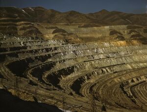 The Bingham Canyon Mine southwest of Salt Lake City has been one of the world's largest copper producers for more than 100 years. The mine, owned and operated by Kennecott Utah Copper (a division of Rio Tinto Group), is a large open pit in a porphyry copper deposit. (The Bingham Canyon Mine and the Chuquicamata copper mine in Chile each claim to be the largest open-pit mine in the world.) It continues to be a major source not only of copper, but also of molybdenum, gold, and silver. The value of metals produced in the year 2006 alone was $1.8 billion.[58]