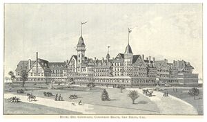 Coronado was incorporated as a town on December 11, 1890. The community's first post office predates Coronado's incorporation, established on February 8, 1887, with Norbert Moser assigned as the first postmaster.[7] The land was purchased by Elisha Spurr Babcock, Hampton L. Story, and Jacob Gruendike. Their intention was to create a resort community, and in 1886, the Coronado Beach Company was organized. By 1888, they had built Hotel del Coronado, and the city became a major resort destination. They also built a schoolhouse and formed athletic, boating, and baseball clubs.