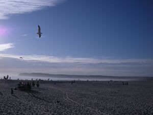 Coronado is a tied island which is connected to the mainland by a tombolo (a sandy isthmus) called Silver Strand. Along the coast of Southern California lie four islands that were spotted by Sebastian Vizcaino and his crew. They named them "Los Coronados". In the mid-1880s, businessmen bought the peninsula near Los Coronados with hopes to turn it into a resort. Later in 1886, the owners of this peninsula hosted a naming contest with the people resulting in the name "Miramar" winning, which was soon overturned due to the public not being satisfied with the name, so they borrowed from their cousin islands "Los Coronados" and named it "Coronado".[6] Coronado is the Spanish term for "crowned" and thus it is nicknamed The Crown City. Its name is derived from the Coronado Islands, an offshore Mexican archipelago.[7]