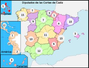- ^ Thieseen, Heather (1996). "Cortes of Cádiz" in Encyclopedia of Latin American History and Culture, vol. 2, p. 277. New York: Charles Scribner's Sons.