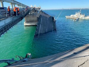 - ^ Section of Crimean Bridge falls into sea, 5 October 2018, https://www.uawire.org/section-of-crimean-bridge-falls-into-sea