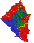 Before the war, the Mostar municipality had a population of 43,037 Croats, 43,856 Bosniaks, 23,846 Serbs and 12,768 Yugoslavs.[69] According to 1997 data, the municipalities of Mostar that in 1991 had a Croat relative majority became all Croat and municipalities that had a Bosniak majority became all Bosniak.[70] Around 60 to 75 percent of buildings in the eastern part of the city were destroyed or very badly damaged, while in the larger western part around 20 percent of buildings had been severely damaged or destroyed.[71]