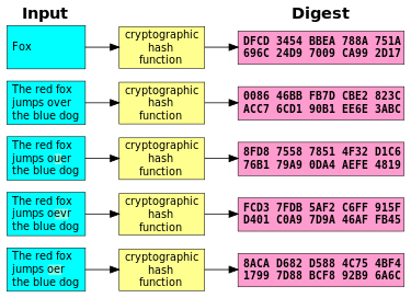 من الأمثلة على دالة هاش التشفيرية خوارزميات إم دي5 وببر وSHA-1.