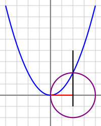 As shown in this graph, to solve the third-degree equation where Omar Khayyám constructed the parabola the circle which has as a diameter the line segment of the positive x-axis, and a vertical line through the point above the x-axis, where the circle and parabola intersect. The solution is given by the length of the horizontal line segment from the origin to the intersection of the vertical line and the x-axis.