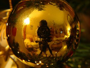 Round convex mirrors called Oeil de Sorcière (French for "sorcerer's eye") were a popular luxury item from the 15th century onwards, shown in many depictions of interiors from that time.[3] With 15th century technology, it was easier to make a regular curved mirror (from blown glass) than a perfectly flat one. They were also known as "bankers' eyes" due to the fact that their wide field of vision was useful for security. Famous examples in art include the Arnolfini Portrait by Jan van Eyck and the left wing of the Werl Altarpiece by Robert Campin.[4]