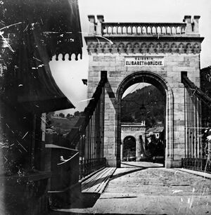 The Děčín area was settled by the Slavic tribe of the Děčané in the 9th century, whence its name. In the 10th century the Přemyslid dukes of Bohemia had a fortress built on the left bank of the Elbe ford, but after a flood, it was rebuilt on the right bank in 1059.[2] A settlement on the trade route from the Ore Mountains in the west to the adjacent Upper Lusatia region was first mentioned in a 993 deed. King Ottokar II of Bohemia (1253–1278) had the town of Děčín laid out as an administrative centre of the surrounding estates after calling in German settlers.