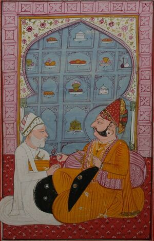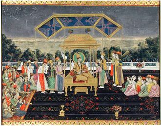 During the reign of the Aurangzeb in 1697, Hassan Ali Khan and Hussain Ali Khan were appointed into Mughal administration.[31][32] They were Indian Muslims belonging to the Sadaat-e-Bara clan of the Barha dynasty, who claimed to be Sayyids or the descendants of the Islamic prophet Muhammad.[33] The brothers became highly influential in the Mughal Court after Aurangzeb's death in 1707 and became de facto sovereigns of the empire when they began to make and unmake emperors.[34][35]