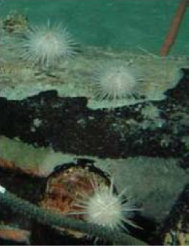 3. Sulfophilic stage: Further decomposition of bones and seawater sulfate reduction happen at this stage. Bacteria create a sulphide-rich environment analogous to hydrothermal vents. Polynoids, bivalves, gastropods and other sulphur-loving creatures move in.
