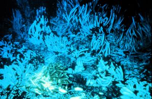 The first discovery of any deep-sea chemosynthetic community including higher animals was unexpectedly made at hydrothermal vents in the eastern Pacific Ocean during geological explorations (Corliss et al., 1979).[1] Two scientists, J. Corliss and J. van Andel, first witnessed dense chemosynthetic clam beds from the submersible DSV Alvin on February 17, 1977, after their unanticipated discovery using a remote camera sled two days before.[1]