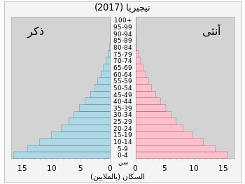 نيجريا من أكثر البلدان اكتظاظاً بالسكان في أفريقيا بما يقارب 196 مليون نسمة في مساحة تبلغ مليون كم²،[1] وهي أيضاً أكثر البلدان اكتظاظاً في السكان في أفريقيا[2] وسابع أكثر البلدان اكتظاظاً بالسكان في العالم.[3] 50% من النيجيريين تقريباً من سكان الحضر، بمعدل تحضر 4.3%.[2] تضم نيجريا أكثر من 250 جماعة عرقية، بأكثر من 500 لغة،[2] ومجموعة متنوعة من الطقوس، التقاليد مما يمنح البلاد تنوعاً ثقافياً كبيراً. الجماعات العرقية الأكبر في نيجريا هي الهاوسا/الفولاني 29% من السكان؛ مع 21% من اليوربا و19% من الإگبو.[2] تمثل شعوب الإفيك، الإبيبيو، الأنانگ، والإجاو السكان الآخرين في الجنوب الشرقي. إرهوبو-إسوكو، الإدو والإتسركيري هم شعوب الغرب الأوسط في البلاد حيث يشكل الأورهوبو الأغلبية[بحاجة لمصدر].