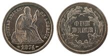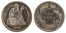 إصدار عام 1796 من عملة الدايم بصورة السيدة ليبرتي على الوجه الأمامي وصورة النسر الصغير على الوجه الخلفي للعملة عملة دايم تعود إلى عام 1800 حيث استبدل النسر الصغير بنسر هيرالدي كبير