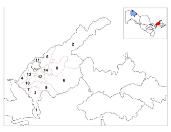 The regions (viloyat) of Uzbekistan are divided into 175 districts (tuman).[1][2] The districts are listed by regions, in the general direction from the west to the east.