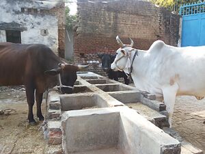 The biomass of wild vertebrates is declining relative to the biomass of domestic animals, with the calculated biomass of domestic cattle alone now being greater than that of all wild mammals combined.[45] Because the evolution of domestic animals is ongoing, the process of domestication has a beginning but not an end. Various criteria have been established to provide a definition of domestic animals, but all decisions about exactly when an animal can be labelled "domesticated" in the zoological sense are arbitrary, although potentially useful.[46] Domestication is a fluid and nonlinear process that may start, stop, reverse, or go down unexpected paths with no clear or universal threshold that separates the wild from the domestic. However, there are universal features held in common by all domesticated animals.[12]