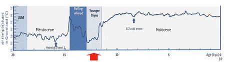 The domestication of animals and plants was triggered by the climatic and environmental changes that occurred after the peak of the Last Glacial Maximum around 21,000 years ago and which continue to this present day. These changes made obtaining food difficult. The first domesticate was the domestic dog (Canis lupus familiaris) from a wolf ancestor (Canis lupus) at least 15,000 years ago. The Younger Dryas that occurred 12,900 years ago was a period of intense cold and aridity that put pressure on humans to intensify their foraging strategies. By the beginning of the Holocene from 11,700 years ago, favorable climatic conditions and increasing human populations led to small-scale animal and plant domestication, which allowed humans to augment the food that they were obtaining through hunter-gathering.[38]
