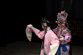 When Lü Bu heard about this early the next morning, he headed for Dong Zhuo's bedroom and peeped in through the window. There he saw Diaochan sitting up grooming her hair while Dong Zhuo was still asleep. Aware of Lü Bu's presence, Diaochan put up a sorrowful expression and pretended to wipe tears off her eyes with a handkerchief.