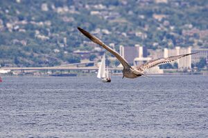 Duluth is on the north shore of Lake Superior at the westernmost point of the Great Lakes. It is the largest metropolitan area, the second-largest city, and the largest U.S. city on the lake. Duluth is accessible to the Atlantic Ocean, 2،300 ميل (3،700 km) away, via the Great Lakes Waterway and St. Lawrence Seaway.[9] The Port of Duluth is the world's farthest inland port accessible to oceangoing ships[10] and is the largest and busiest port on the Great Lakes.[11] It is also among the top 20 U.S. ports by tonnage. Common items shipped through Duluth include coal, iron ore, grain, limestone, cement, salt, wood pulp, steel coil, and wind turbine parts.