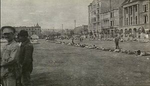 With the Ottomans able to bombard the port and shipping with observed artillery-fire, Marshall ordered Dunsterforce to leave. Ships had been readied at the docks and evacuation took place on the night of 14/15 September in two ships. The Dictators changed their minds but behind a rearguard of the 7th North Staffordshire, the men guns and equipment were loaded. A crewmember managed to turn on the lights of Dunsterville's ship, that was fired on by the port guardship and hit the Armenian six times (the Dunsterforce passengers holding up the crew at gunpoint) as the ships ran for Bandar e-Anzali and arrived with no more casualties.[47][48] Two Australians who were stranded managed to leave on a refugee ship to Krasnovodsk.[49] With the withdrawal of the British, order broke down among the civilian Azeris, Cossacks and Armenian refugees and as the remaining defences were overrun, fires, pillaging and atrocities began. The Ottoman bombardment continued through the night and by dawn up to 6,000 Armenians, many of them civilians, had been killed in reprisal by Azeri irregulars; there had been about 1,000 Ottoman casualties.[46] The retreat from Baku left the Dunsterforce troops and Australian wireless operators in Lankaran isolated among an aggrieved public and the force had to repel an attack by Tartar irregulars, before running for Bandar e-Anzali in a stolen lorry on 18 October.[50]