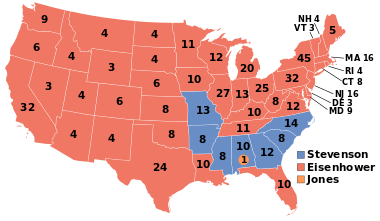 خاض أيزنهاور الانتخابات الرئاسية 1952، كمرشح للحزب الجمهورية أمام السناتور روبرت أ. تافت ولشن حملة قوية ضد "الشيوعية، كوريا والفساد". فاز بأغلبية ساحقة، بعد هزيمته للديمقراطي أدلاي ستڤنسون وكان ذلك نهاية تحالف الصفقة الجديدة. في السنة الأولى من رئاسته، خلع أيزنهاور الرئيس الإيراني في الانقلاب الإيراني 1953 واستخدم التهديدات النووية لإنهاء الحرب الكورية مع الصين. في ظل سياسة نيو لوك التي اتبعها في مسألة الردع النووي أعطى أولوية للأسلحة النووية بينما قلل من تمويل القوات العسكرية التقليدية؛ وكان الهدف هو الضغط على الاتحاد السوڤيتي الذي كما وصفه أيزنهاور، التهديد الذي يمثله انتشار الشيوعية. عام 1955 وافق الكونگرس على طلبه الخاص بقرار فورموسا، الذي مكنه من منع العدوان الشيوعي الصيني على القوميين الصينيين وأسس السياسة الأمريكية في الدفاع عن تايوان. أجبر أيزنهاور إسرائيل، المملكة المتحدة وفرنسا بإنهاء عدوانهم على مصر أثناء أزمة السويس 1956. عام 1958، أرسل 15.000 جندي أمريكي إلى لبنان لمنع الحكومة المالية للغرب من السقوط بعد قيام ثورة 23 يوليو في مصر. قرب انتهاء فترته الرئاسية، عمل على عقد لقاء قمة مع السوڤييت إلا أنها لم تعقد بسبب حادث يو-2.[4]