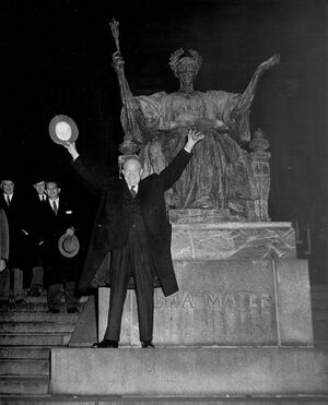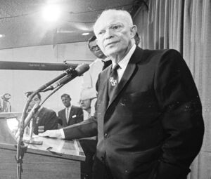 دوايت ديڤد "آيك" آيزنهاور Dwight David Eisenhower (تُنطق []ˈzənhaʊər[], EYE-zən-how-ər؛ و. 14 أكتوبر 1890 - ت. 28 مارس 1969)، هو رئيس الولايات المتحدة رقم 34 من 1953 حتى 1961. وكان جنرال في الجيش الأمريكي أثناء الحرب العالمية الثانية وكان القائد الأعلى للحلفاء في اوروپا؛ وكان مسئول عن التخطيط والإشراف على غزو شمال أفريقيا في عملية الشعلة عام 1942-43 والغزو الناجح لفرنسا وألمانيا عام 1944–45 من الجبهة الغربية. عام 1951، أصبح أول قائد أعلى للناتو.[2]