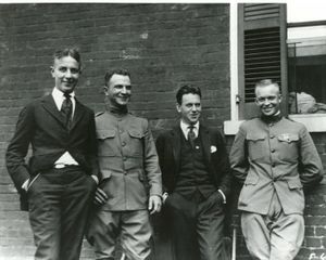 أيزنهاور، أقصى اليمين، مع ثلاثة أصدقاء غير معروفين، في 1919 بعد أربع سنوات من التخرج من وست پوينت.