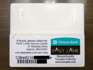 - ^ Massachusetts Turnpike Toll / Mileage Calculator Archived 2012-09-04 at archive.today shows that E-ZPass discount tolls are limited to FAST LANE Archived 2011-02-26 at the Wayback Machine users.
