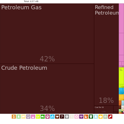 النفط، الغاز الطبيعي ومنتجات النفط 94% (2017)[10]