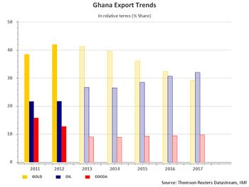 السلع التصديرية | النفط، الذهب، الكاكاو، الأخشاب، التونة، البوكسيت، الألومنيوم، خام المنجنيز، الماس، منتجات البستنة |
