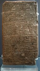 The modern idea of how the eduba functioned is based partially on descriptions from Sumerian literature (this is especially true of earlier scholarship - e.g., Sjöberg 1975,[9] Kramer 1949[10]). A number of stories are set in the scribal school or attest to what life was like as a scribal student. These are sometimes referred to by modern scholars as "eduba literature"[11][12] (not to be confused with a second meaning of this term- any composition learned and copied by scribal students) or "school stories."[13][14] They include the compositions "Schooldays" (Eduba A); "A Scribe and his Perverse Son" (Eduba B); "The Advice of a Supervisor to a Younger Scribe" (Eduba C); "Scribal Activities"(Eduba D); "Instructions of the Ummia" (Eduba E); and "Regulations of the E-duba" (Eduba R). A few Sumerian dialogues also touch on elements of student life, including "A Dialogue Between Two Scribes" (Dialogue 1); "A dialogue between Enki-hengal and Enkita-lu" (Dialogue 2); and Enki-manshum and Girini-isag (Dialogue 3). Several royal hymns, recounting the exploits of Mesopotamian kings, also make reference to the institution of the eduba; these include the compositions Šulgi B; Lipit-Ešter B; Išme-Dagan V; and Enlil-Bani A.[15] Several Old Babylonian letters[16] and proverbs[17] also allude to scribal education or the eduba.