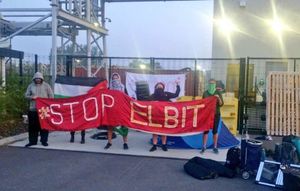 كان الناشطون قد قاموا بوقفة إحتجاجية وأغلقوا مصنع إلبيت للأسلحة في كنت بجنوب شرق إنگلترة، تشمل مكونات الأسلحة المصنوعة في المصنع، منظار القنص وملحقات الطائرات بدون طيار.[6]