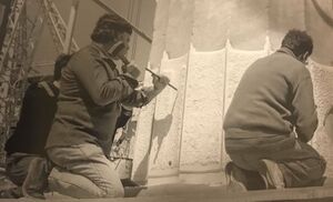 American archeologist Dorothy King, in a newspaper article, wrote that techniques similar to the ones used in 1937–38 were applied by Greeks as well in more recent decades than the British, and maintained that Italians still find them acceptable.[29] The British Museum said that a similar cleaning of the Temple of Hephaestus in the Athenian Agora was carried out by the conservation team of the American School of Classical Studies at Athens[77] in 1953 using steel chisels and brass wire.[65] According to the Greek ministry of Culture, the cleaning was carefully limited to surface salt crusts.[76] The 1953 American report concluded that the techniques applied were aimed at removing the black deposit formed by rain-water and "brought out the high technical quality of the carving" revealing at the same time "a few surviving particles of colour".[77]