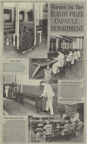 In addition to development of new medicines, the company achieved several technological advances, including automation of its production facilities. Lilly was also an innovator in pill capsule manufacturing. It was among the first manufacturers to insert medications into empty gelatin capsules, which provided a more exact dosage.[15] Lilly manufactured capsules for its own needs and sold its excess capacity to others.[41] A 1917 Scientific American article claimed the Lilly operation in Indianapolis was "the largest capsule factory in the world" and was "capable of producing 2.5 million capsules a day".[41] One of Lilly's innovations was fruit flavoring for medicines and sugar-coated pills to make their medicines easier to swallow.[21] Over the next few years the company began to create tens of millions of capsules and pills annually.[31]