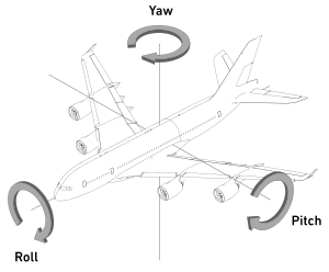 The vertical tail structure has a fixed front section called the vertical stabiliser, used to control yaw, which is movement of the fuselage right to left motion of the nose of the aircraft. The rear section of the vertical fin is the rudder, a movable aerofoil that is used to turn the aircraft's nose right or left. When used in combination with the ailerons, the result is a banking turn, a coordinated turn, the essential feature of aircraft movement.[1][2]