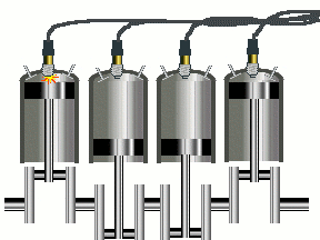 The overall displacement for a typical reciprocating piston engine is calculated by multiplying together three values; the distance travelled by the piston (the stroke length), the circular area of the cylinder, and the number of cylinders in the whole engine.[2]