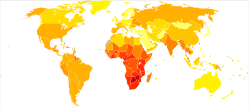مقالة مفصلة: قائمة البلدان حسب معدلات إنتشار الإيدز بين البالغين