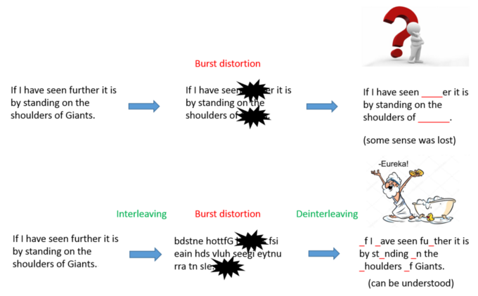 Original transmitted sentence: ThisIsAnExampleOfInterleaving [ك] Received sentence with a burst error: ThisIs______pleOfInterleaving [ك]