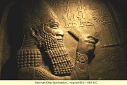 فرعون مصر طهراقا وملك صيداعبدي ملكي يسجدون لملك اشور آسرحدون 671 ق.م