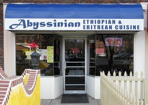 By far, the largest concentration of Ethiopians in the United States are found in Washington, D.C. and the local metro area. Some conservative estimates put the number at around 75,000 residents, while other figures go up to 250,000.[21] The Ethiopian Community Center was opened in 1980 to serve the area's Ethiopian residents.[22] Ethiopian businessmen have also helped revitalize the Shaw and U Street vicinities. Although they mainly live in other parts of the capital, these entrepreneurs purchased old residential property, which they then renovated and converted into new office spaces, restaurants and cafes.[23] Additionally, Ethiopian businessmen in the District of Columbia own various parking garages, taxi firms, social establishments, grocery stores, and travel agencies.[24]