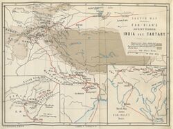 Faxian's major work is his account of his travels, known in English both by its Chinese name Foguoji or Foguo Ji (佛国记; 佛國記; Fóguójì) and by various translations, including A Record of the Buddhist Kingdoms, Record of the Buddhistic Kingdoms,[9][8] Buddhist Country Records,[7] etc. The book is also known as "Faxian's Travels" (法显行传; 法顯行傳; Fǎxiǎn Xíngzhuàn), "Faxian's Biography" (法显传; 法顯傳; Fǎxiǎnzhuàn), "Memoirs of the Eminent Monk Faxian" (高僧法显传; 高僧法顯傳; Gāosēng Fǎxiǎn Zhuàn), "A Buddhist Pilgrimage to India" (佛游天竺记; 佛游天竺記; Fóyóu Tiānzhú Jì), Faxian's "Report on Travel to India" (历游天竺记传; 歷游天竺記傳; Lìyóu Tiānzhú Jìzhuàn), and Faxian's work "On India" (天竺国记; 天竺國記; Tiānzhúguó Jì). Faxian's memoirs are an independent record of the society and culture of places he visited, particularly India. His translations of Sanskrit texts he took with him to China are an important means to date texts, named individuals, and Buddhist traditions. They provide a terminus ante quem for many historical names, manuscripts, events, and ideas mentioned.[1][2]