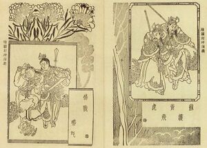 Illustrations of Fengshen Yanyi. Left: Yang Jian and Nezha; Right: Su Hu and Huang Feihu
