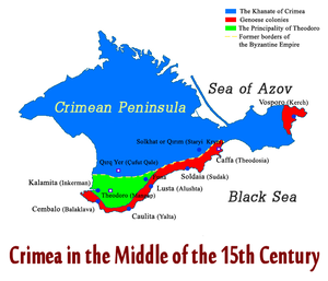 Kaffa eventually recovered. The thriving, culturally diverse city and its thronged slave market have been described by the Spanish traveler Pedro Tafur, who was there in the 1430s.[9] In 1462 Caffa placed itself under the protection of King Casimir IV of Poland.[10] However, Poland did not offer significant help due to reinforcements sent being massacred in Bar fortress (modern day Ukraine) by Duke Czartoryski after quarrel with locals.