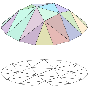 من أجل المسألة P2 نحتاج أن تكون عبارة عن مجموعة من التوابع من . في الشكل الموضح على اليسار، يظهر تثليث مضلعي لمنطقة مضلعية من 15 ضلع في المستوي (في الأسفل)، والتابع الخطى المجزأ (ملوناً، في الأعلى) لهذا المضلع الذي يكون خطياً على كل مثلث من التثليث. حيث أن الفضاء سيحتوي على توابع تكون خطية على كل مثلث من التثليث المختار.
