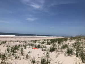The island was heavily damaged in the high tides associated with Hurricane Sandy in 2012, including three breaches around Smith Point County Park on the sparsely populated eastern end of the island. The biggest breach (and politically most difficult one to deal with because it is in a wilderness area) is at Old Inlet in the Otis Pike Wilderness Area just west of Smith Point County Park. Old Inlet is at the site of previous breaches (which have come and gone on their own) and was 108 feet wide after the storm on the south end and 1,171 feet on February 28, 2013.[20] Officials have been debating whether to close the breach and let nature take its course, as it has been flushing out the Great South Bay and improving water quality. However, residents of the bay front communities noted increased flooding after the storm. This flooding was later found to be the result of several nor'easters and unrelated to the breaches.[21] As of 2018, the breach remained open.[22] Officials have moved to close the other two breaches which are on either side of Moriches Inlet—one in Cupsogue County Park and the other being in Smith Point County Park.[23][24][25]