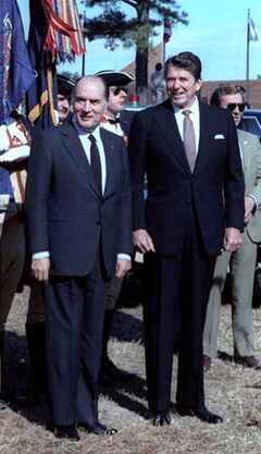 According to a contemporary historian, there were numerous and obvious indications that the American public did not support its government's Vichy policy, that it saw Vichy's true colors, and that it even supported de Gaulle's Free France movement.[87] When visiting the United States in July 1944, de Gaulle received a very warm welcome from large public audiences when in the same time Roosevelt was slow to acknowledge that the Provisional Government formed around de Gaulle in Algiers was truly representing political parties and trade unions as they would take their position back after the liberation of France.