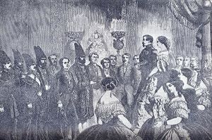 في 1857، أثناء الحرب الإنگليزية الفارسية (1856–1857)، السفير الفارسي فروخ خان أُرسِل إلى ناپليون الثالث، الذي أبدى أسفه حول النزاع. أفضت المفاوضات إلى توقيع معاهدة پاريس في مارس 1857، والتي أنهت الحرب الإنگليزية الفارسية.[31]