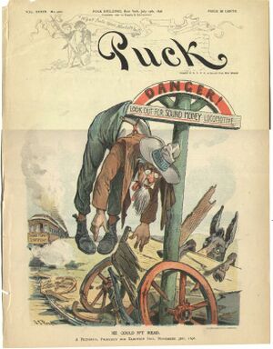 Entitled, "A down-hill movement" by C.J. Taylor in 1896