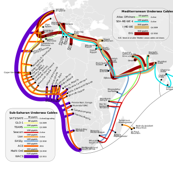 نظام الكابل البحري يمتد بطول 9.800 كم، دخل الخدمة في 2011 بقدرة دنيا تصل إلى 640 گ.ب/ث.