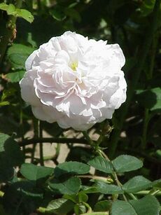 Literally "white roses", derived from R. arvensis and the closely allied R. × alba. The latter species is a hybrid of R. gallica and R. canina.[14] This group contains some of the oldest garden roses. The shrubs flower once yearly in the spring or early summer with scented blossoms of white or pale pink. They frequently have gray-green foliage and a vigorous or climbing habit of growth. Examples are 'Alba Semiplena', 'White Rose of York'.[22] [24]