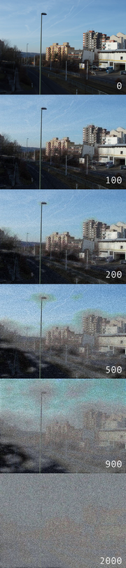 Successive generations of photocopies result in image distortion and degradation.[3] Repeatedly downloading and then reposting / reuploading content to platforms such as Instagram or YouTube can result to noticeable quality degradation.[4][5][6] Similar effects have been documented in copying of VHS tapes.[7] This is because both services use lossy codecs on all data that is uploaded to them, even if the data being uploaded is a duplicate of data already hosted on the service, while VHS is an analog medium, where effects such as noise from interference can have a much more noticeable impact on recordings.